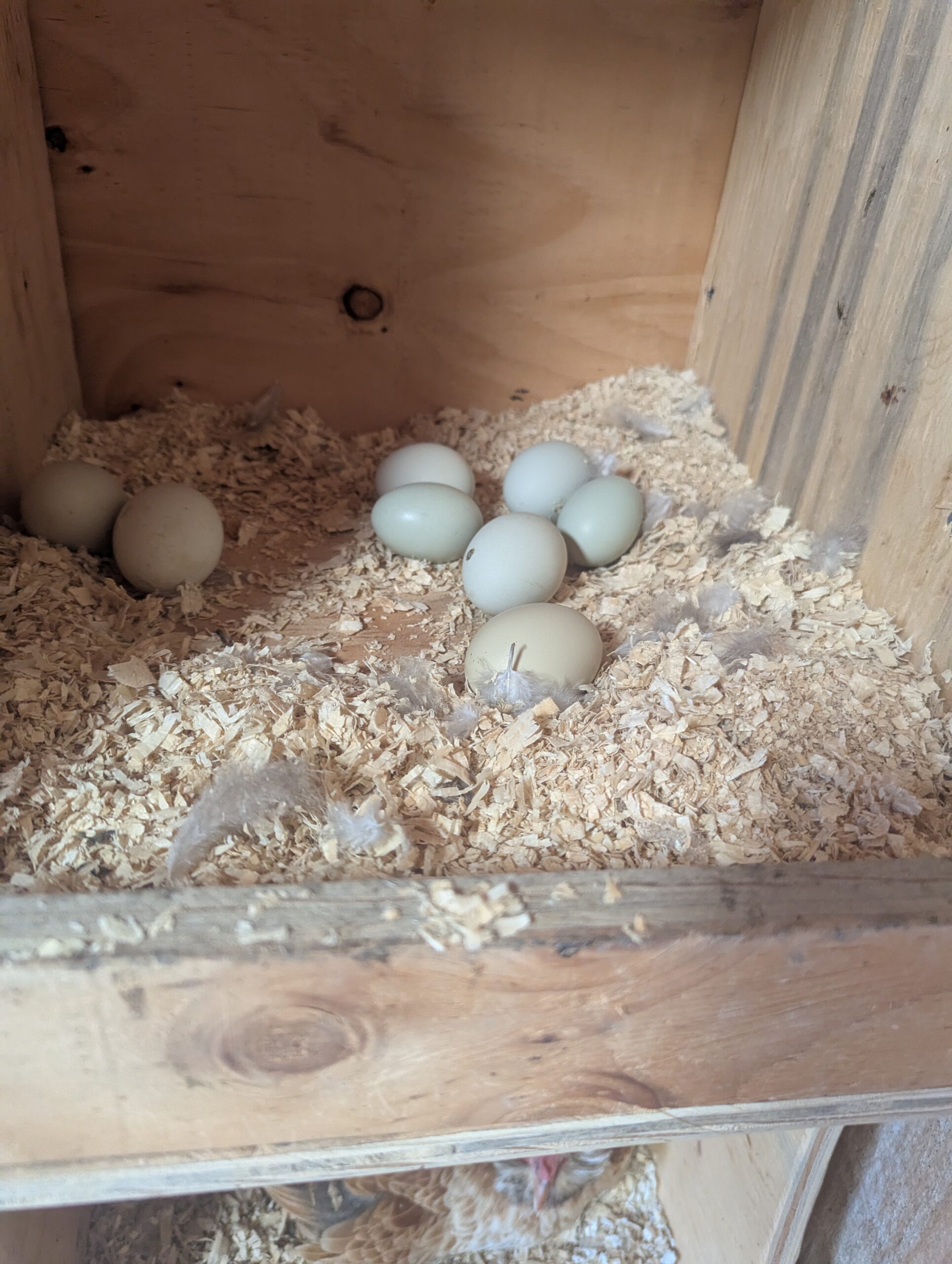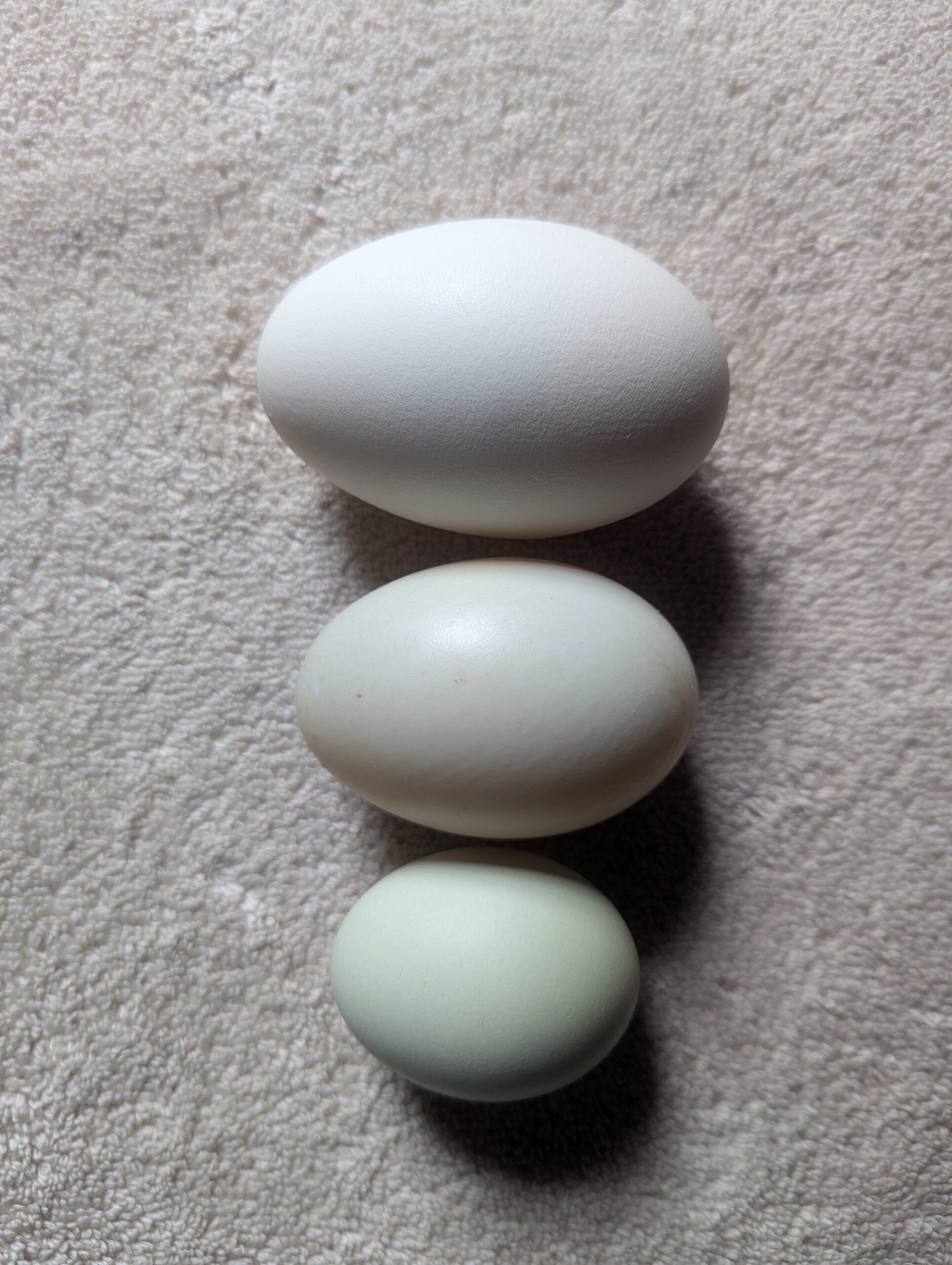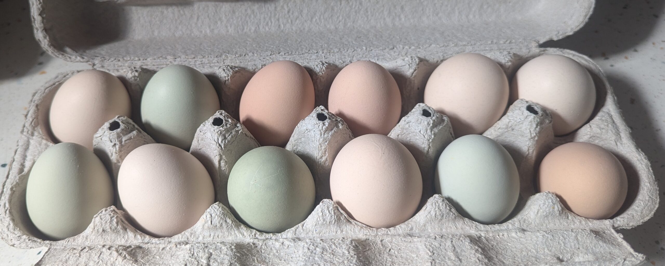 Easter Egger hens lay eggs in a variety of shell colors — blue, green, and pink!
