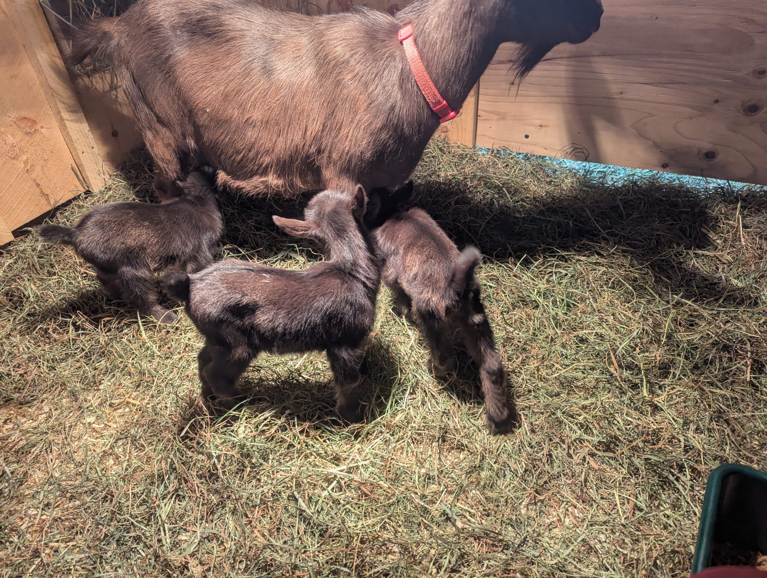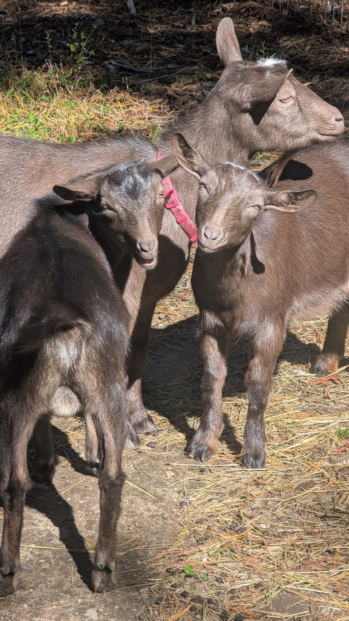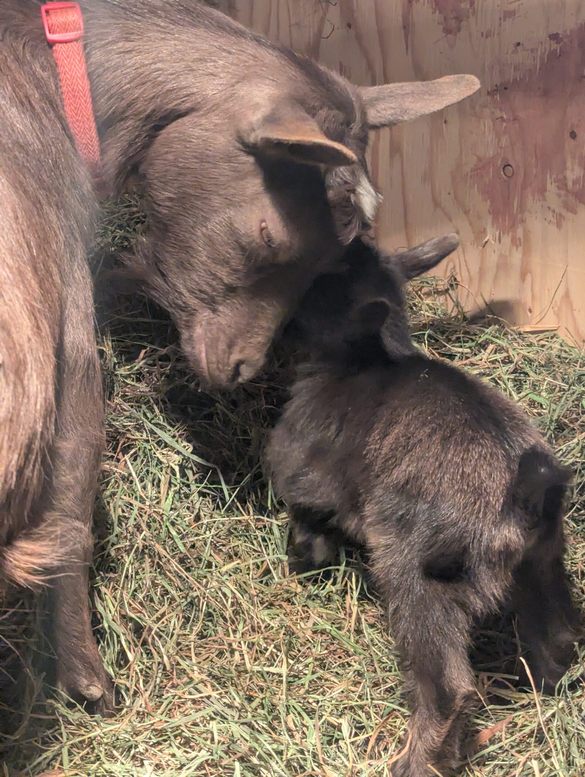 A new mom and the soul goat to thank for our milk products! On top of being a great caretaker for her three babies, she has a gentle demeanor.