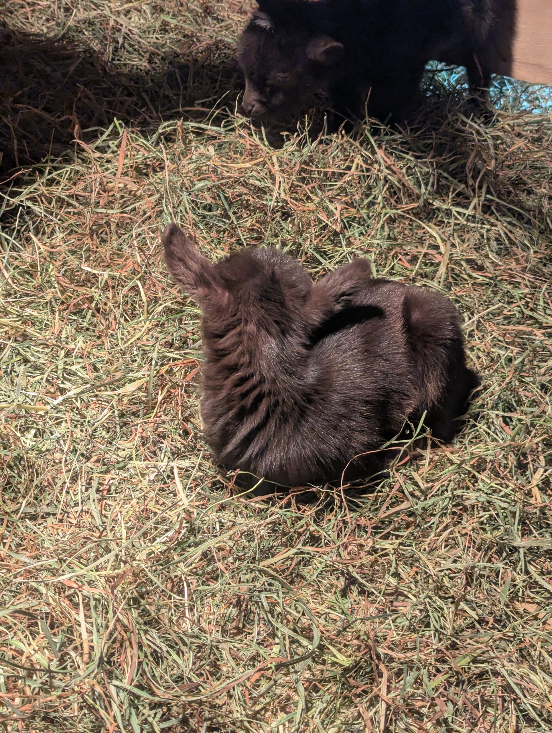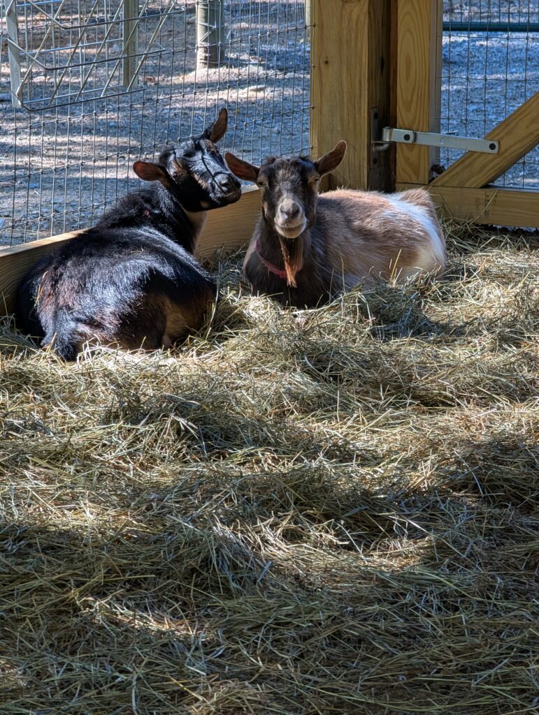 Cora, our oldest Nigerian, is by far the sweetest and kindest goat on our farm. She spends her days relaxing with her daughter, Lady Sybil, and looking for head pats from anyone who enters the paddock.
