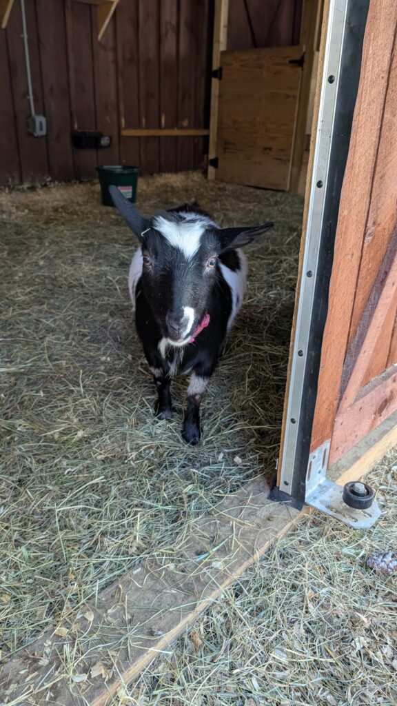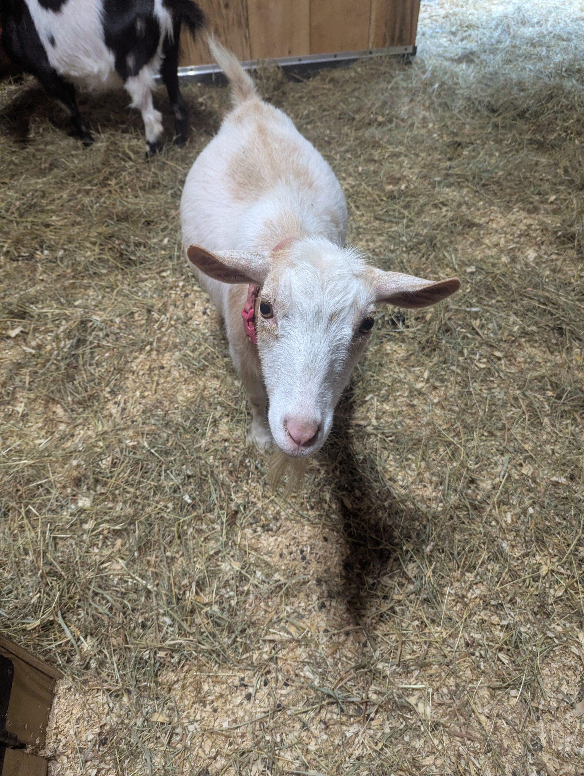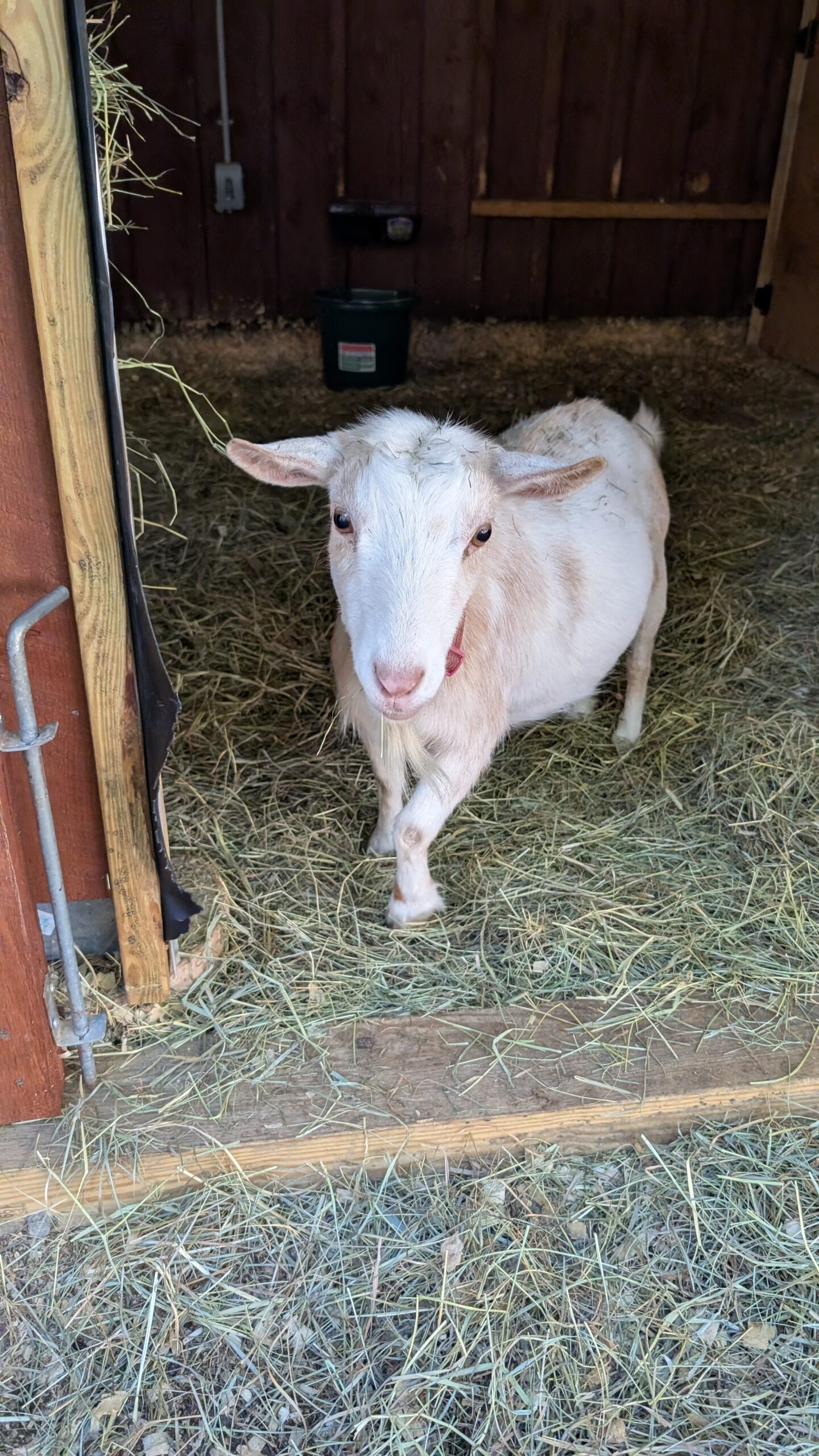 Another mom in the mix! Easily earning the title of sweetest goat out of our bunch, she seeks under-chin rubs, attention, and treats from anyone and everyone.