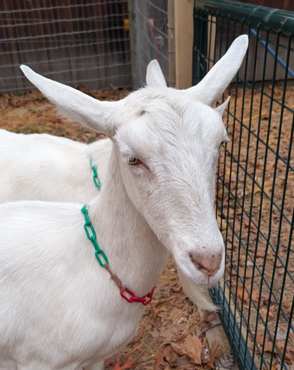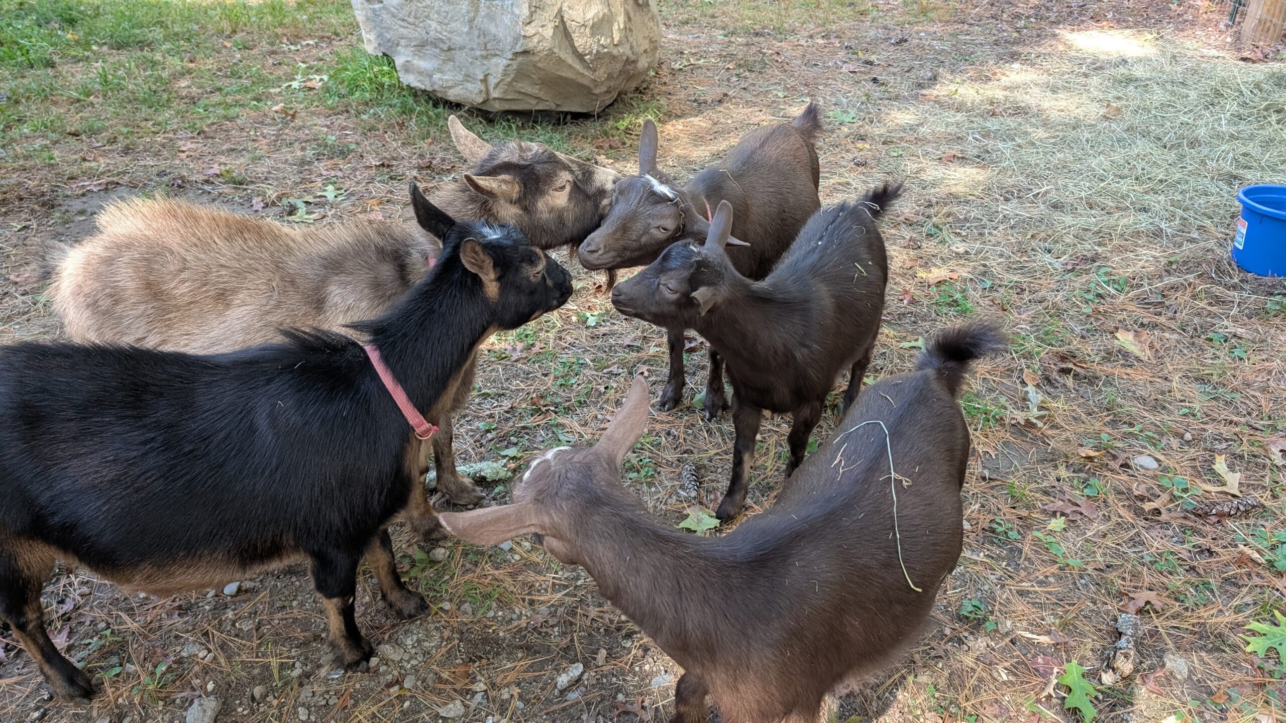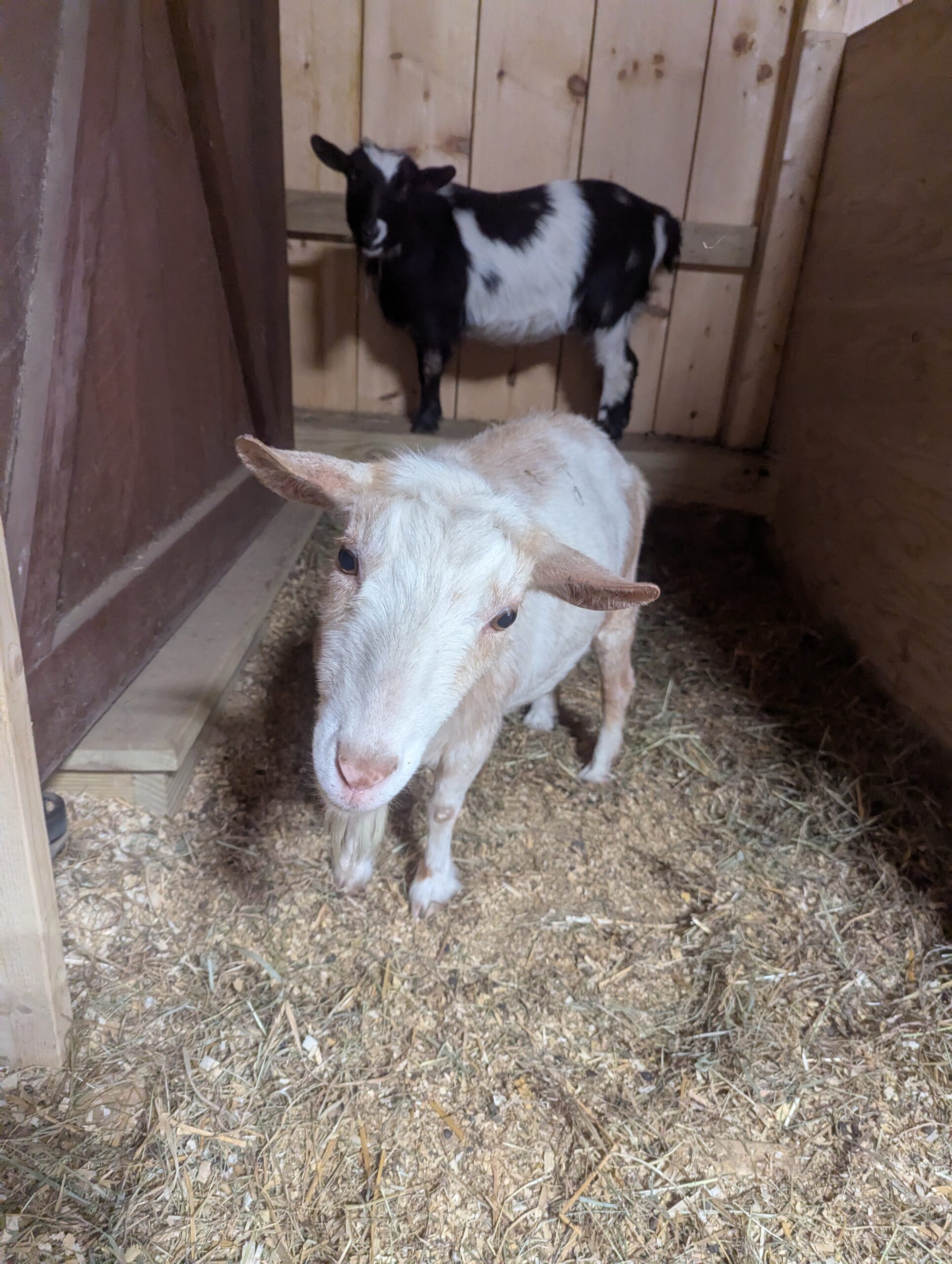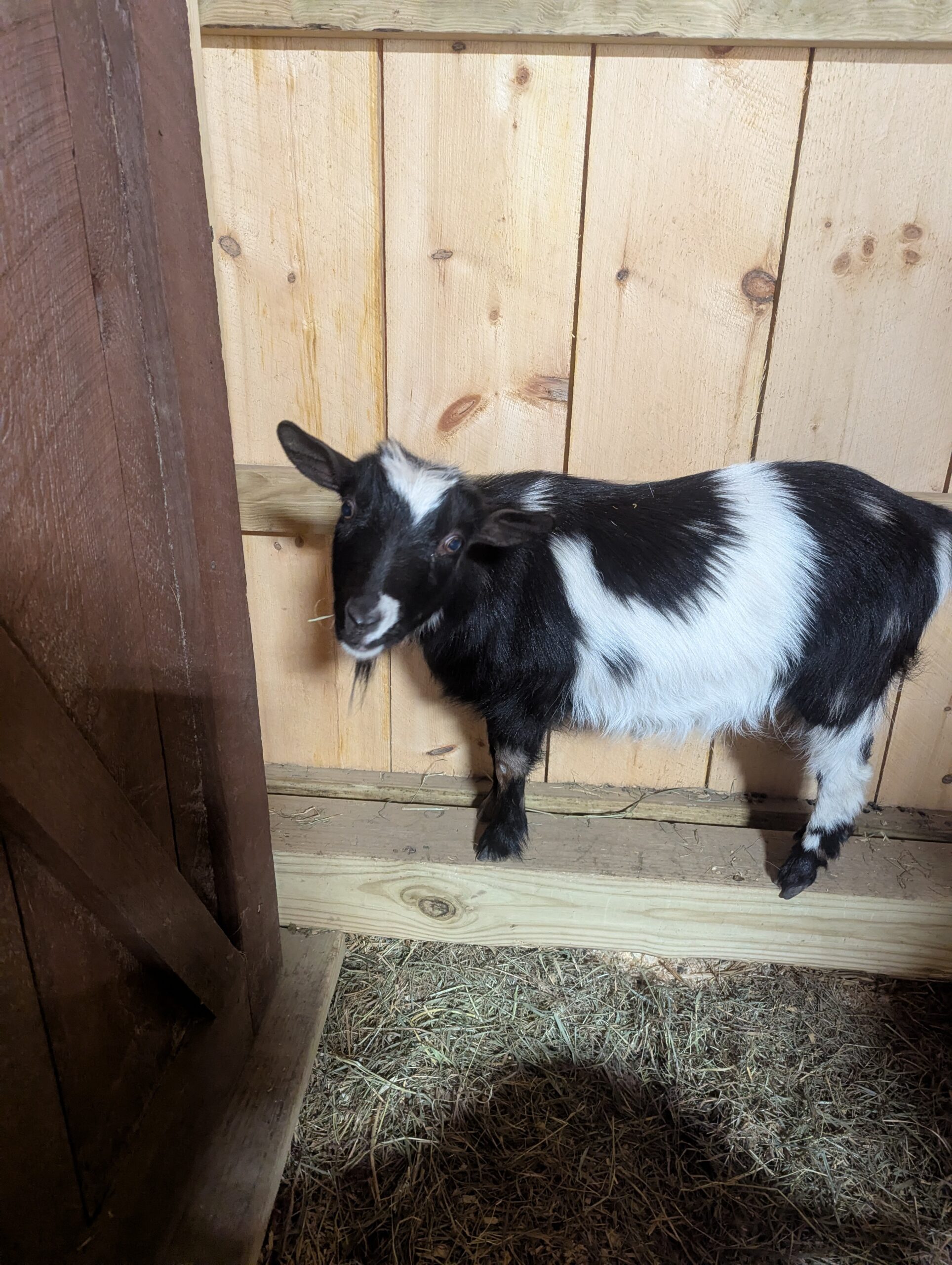 Another mom in the mix! Easily earning the title of sweetest goat out of our bunch, she seeks under-chin rubs, attention, and treats from anyone and everyone.