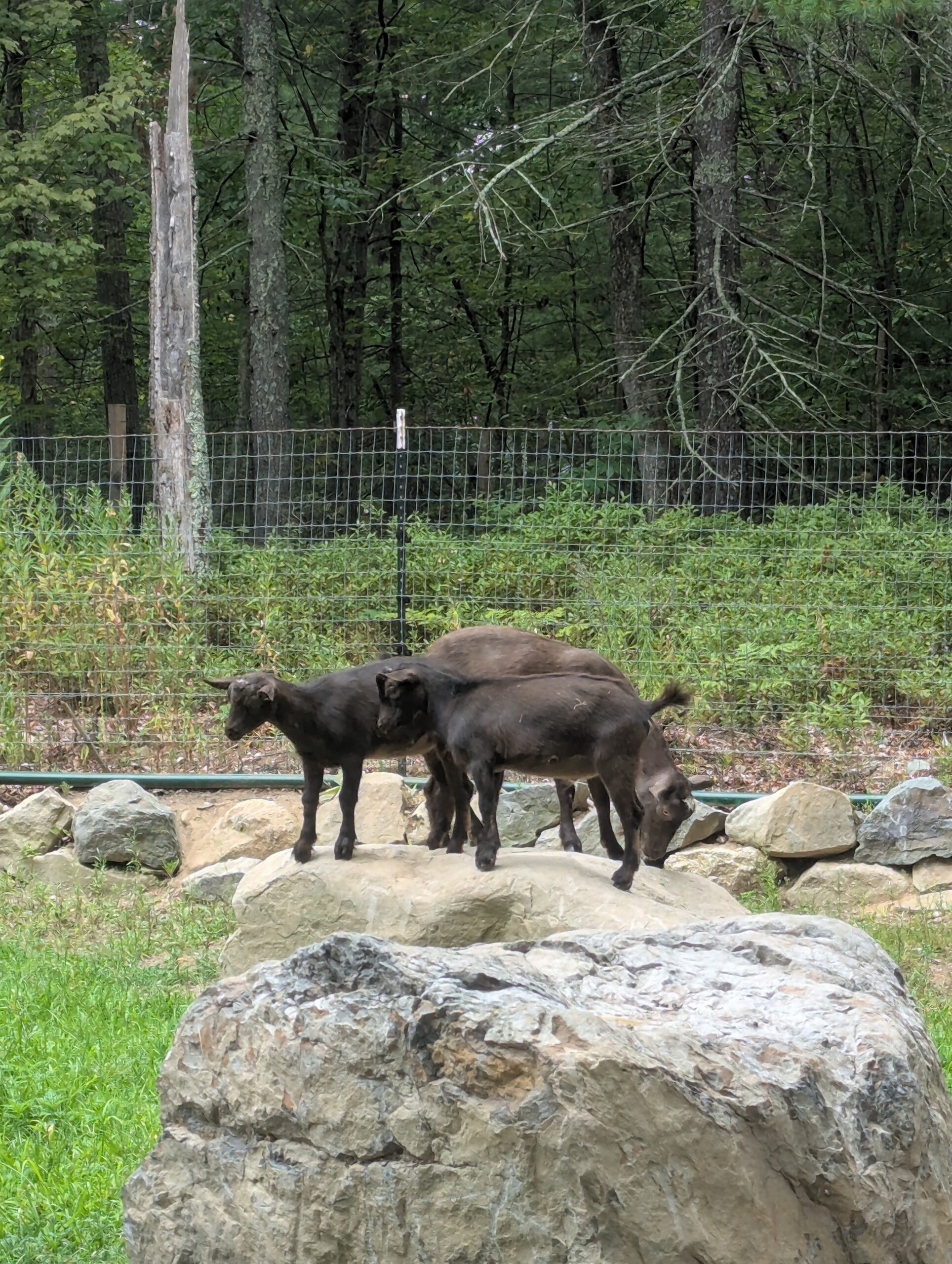Welcome to the newest and ever-expanding addition of our farm — our dairy goats. Currently Woodland Acres Farm has two types of dairy goats: Nigerian Dwarf and Saanens. These affection animals couldn’t be further apart personality wise! Our Nigerians keep us plenty occupied with their silly antics of jumping from rock to rock, to the consistent demands for affection. The two Saanens are quiet and peaceful, though curious and equally looking for affection.There is always fun with the goats! While the milk production is just beginning, many tasty dairy products are in the works such as kefir, yogurt, and cheese.